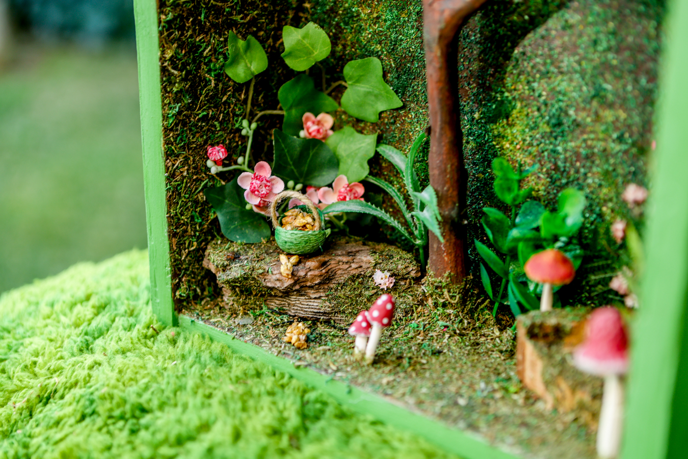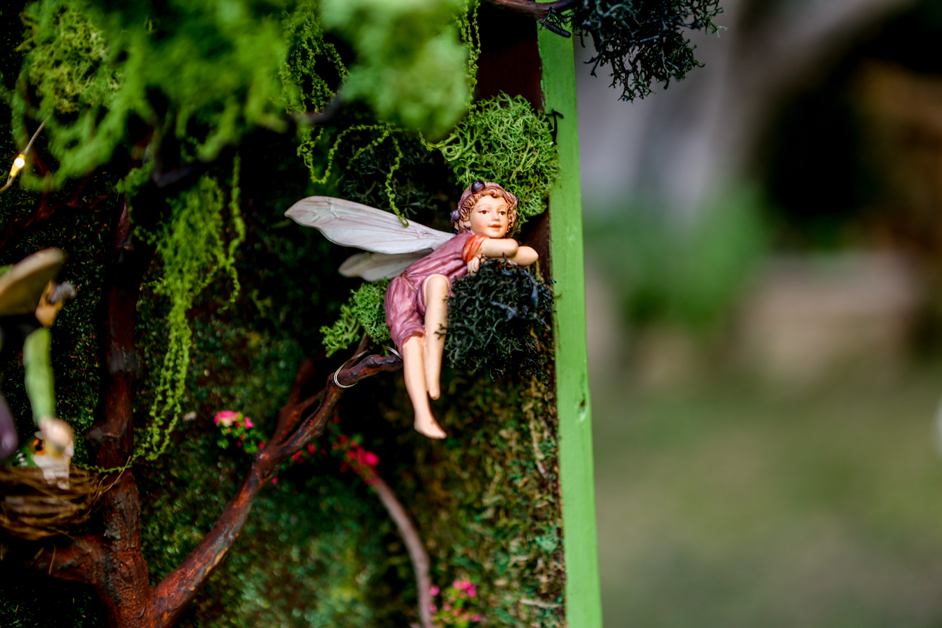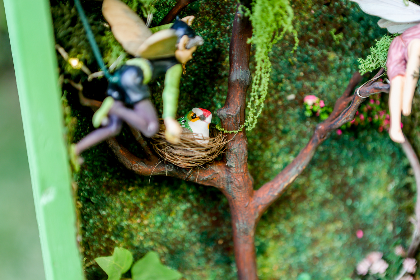 Ένα παλιό συρτάρι έγινε ένα μικρό σκηνικό στολισμένο με βρύα, λουλούδια, μανιταράκια και πάνω σε ένα δέντρο οι δύο νεραιδούλες ταξιδεύουν και εμάς στον δικό τους μαγικό κόσμο!!