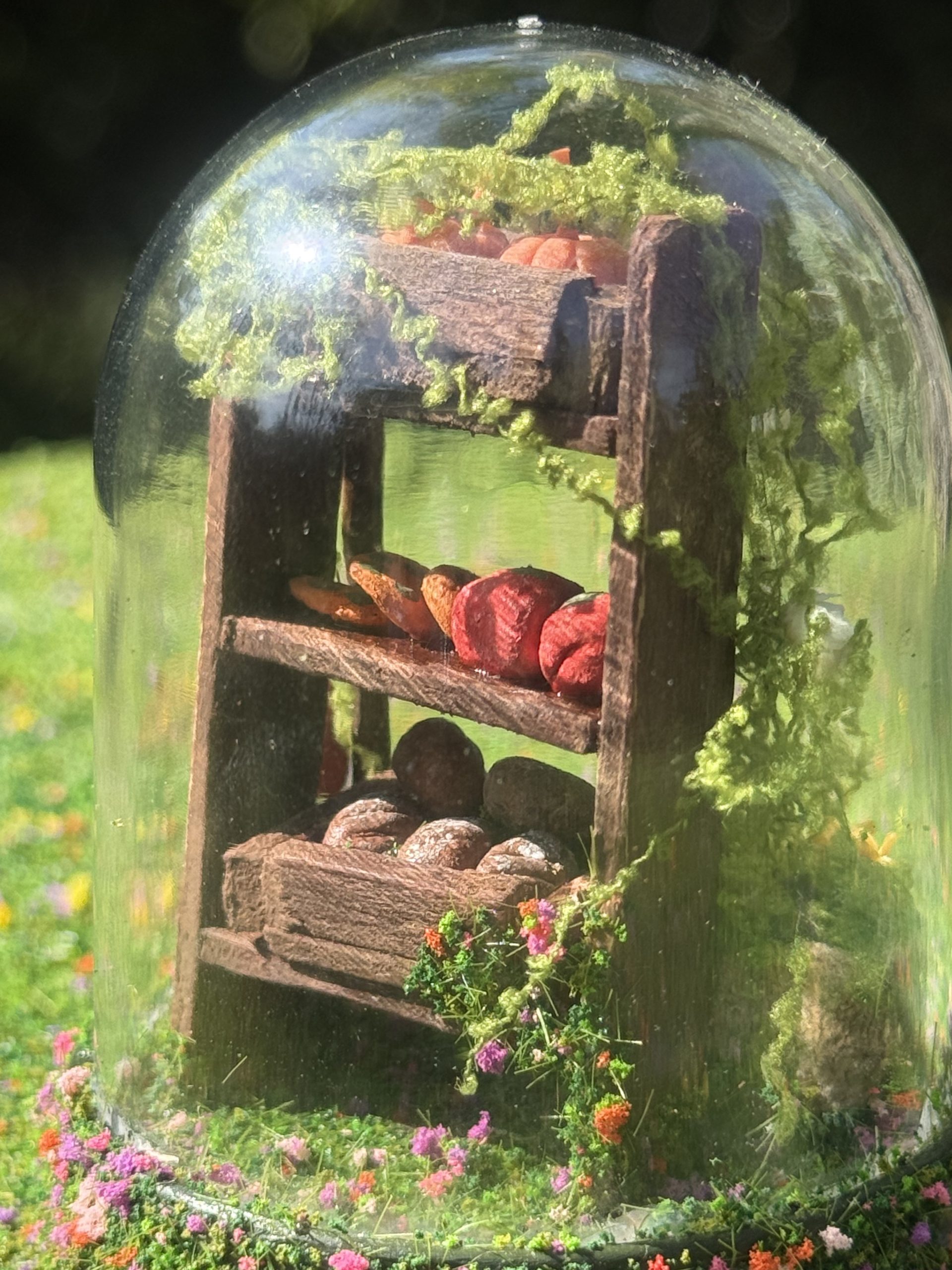 Within this delicate miniature dome, a sweet corner of a fairy forest quietly comes to life.
