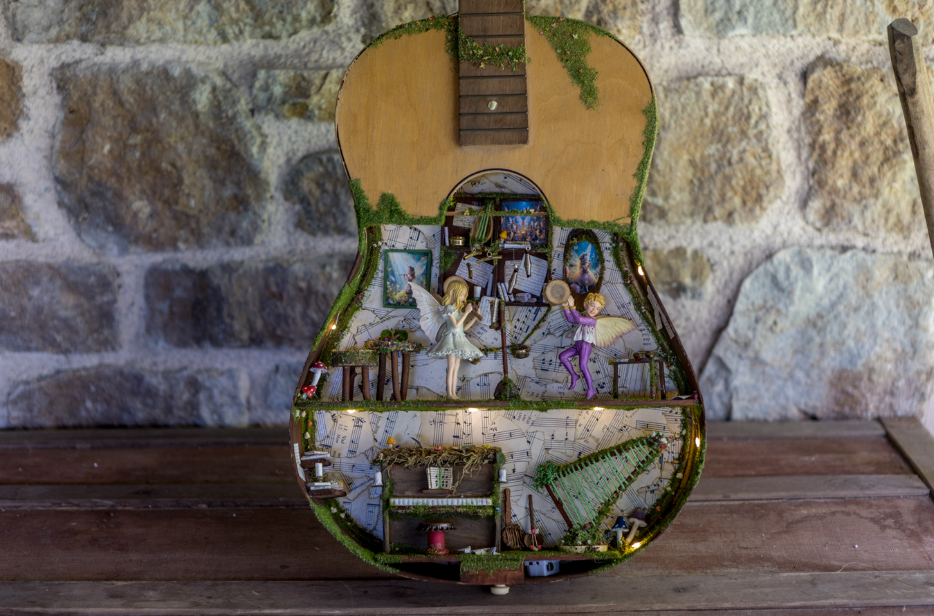 Once, in a forgotten corner of the forest, two fairies discovered an old, broken guitar. It was sad, for no one played it anymore… But the fairies, with a sprinkle of fairy dust and a whole lot of love, transformed it into a music school for fairies!
